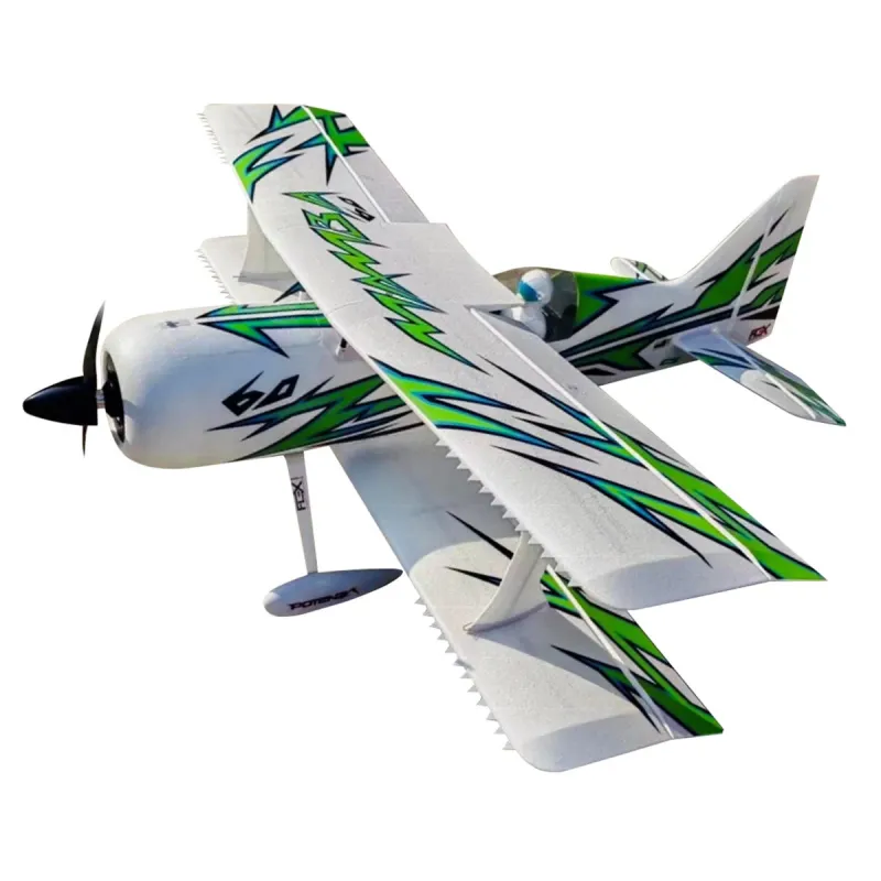 The Mamba 60E+ Super Plug-N-Play (PNP) Electric Airplane, designed by world champion Quique Somenzini, brings top-tier 3D and aerobatic performance to pilots of all skill levels. With decades of design expertise behind it, this biplane is crafted for precision, agility, and unbeatable flight handling. Its lightweight structure, advanced aerodynamics, and cutting-edge features make it a standout performer. Fully licensed by Jim Kimball Enterprises, the Mamba 60E delivers an outstanding flying experience with its explosive power, durability, and ease of transportation.