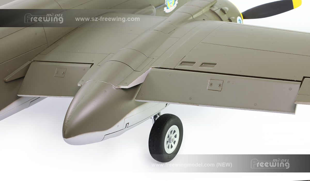 The flight line RC B-25J has a complete set of CNC aluminum alloy simulated shock absorbing landing gears and complete cabin doors and control units. The larger wheel size meets the needs of grassland takeoff and landing. The specifications of the front and rear wheels are: Ø60х16mm, Ø85х26mm)