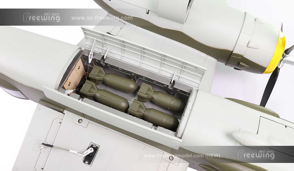 • Servo-driven, fully operational bomb doors with 4 dummy “bombs” for deployment